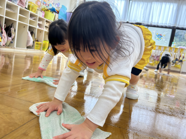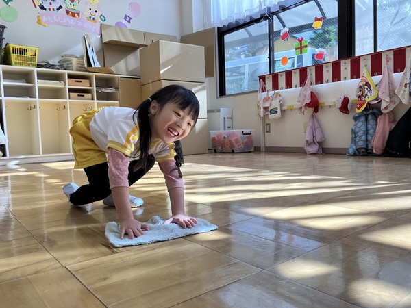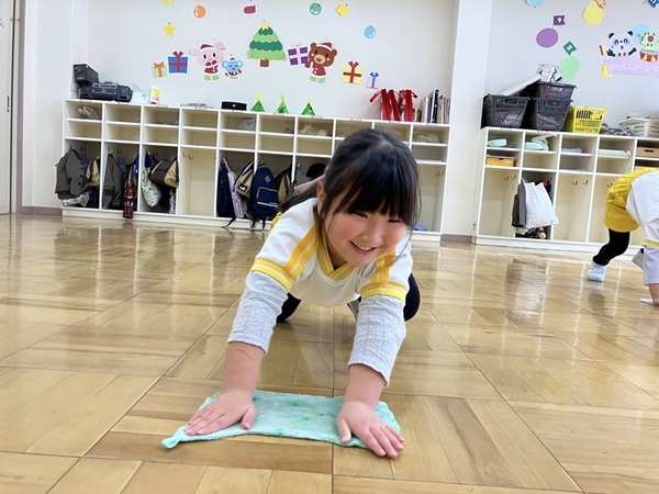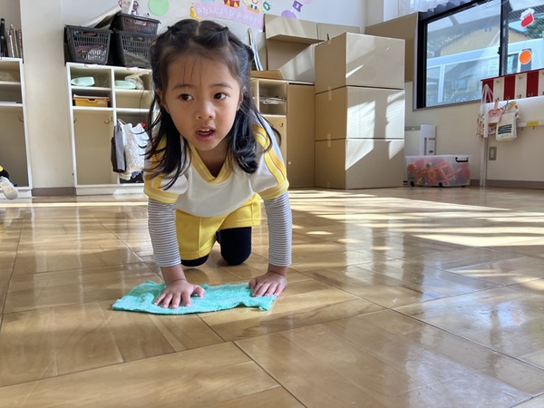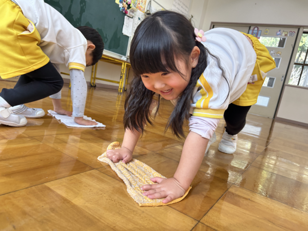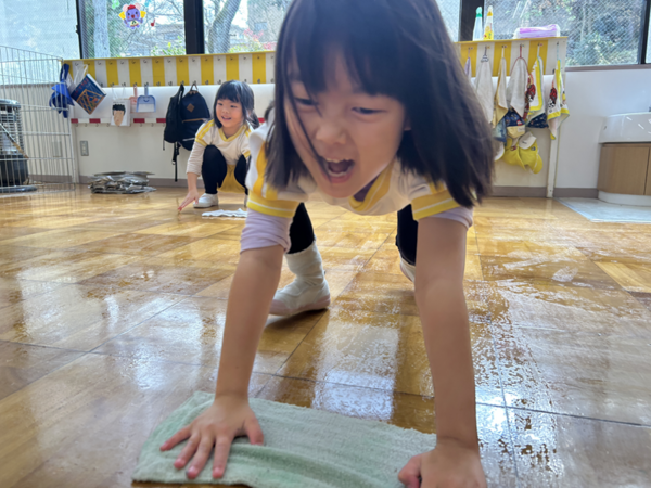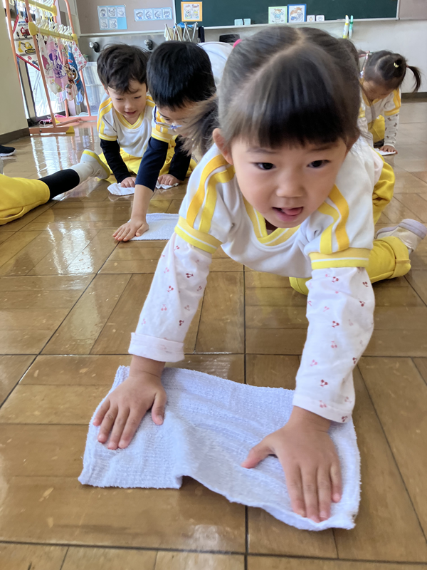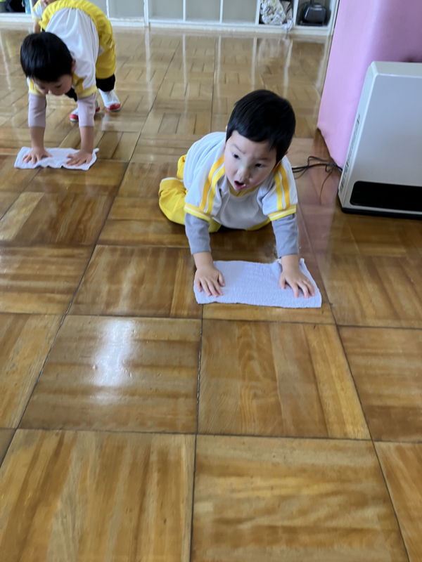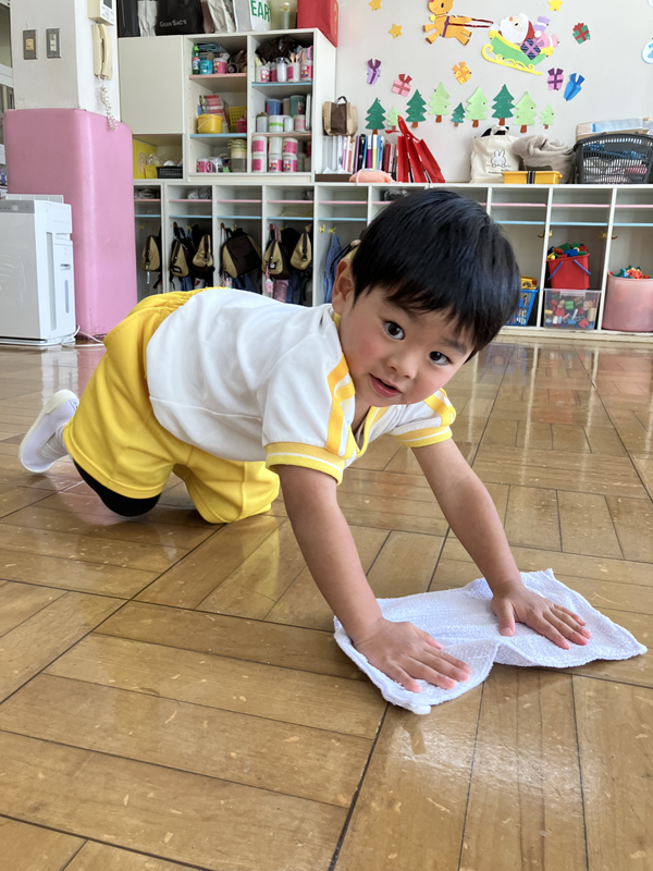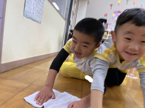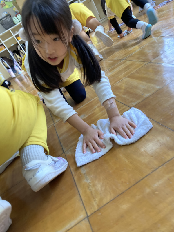 みんなでぞうきんがけ3往復しました🔥