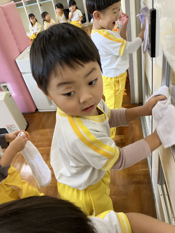 今日はみどり組さんで大掃除!!