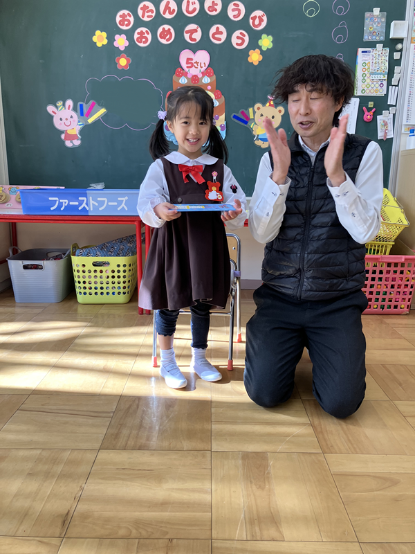 お歌やお誕生日おめでとうとお友だちにお祝いしてもらって大喜びのお友だち☆ミ
