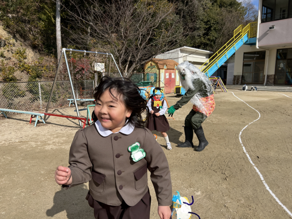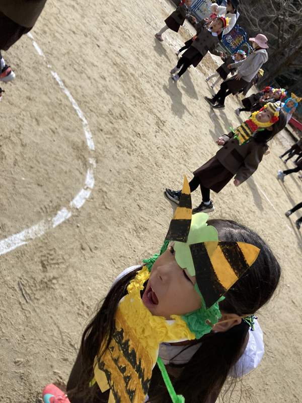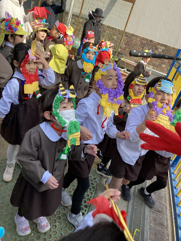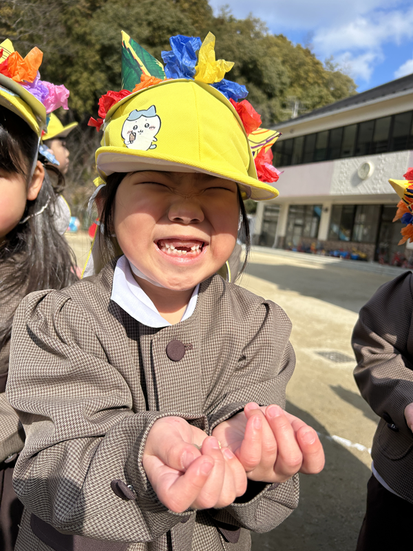 たくさんの豆をまき、岩倉幼稚園に来た鬼はどこかへ行ってしまいました!!