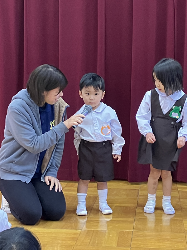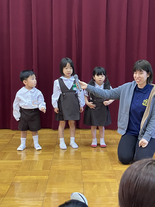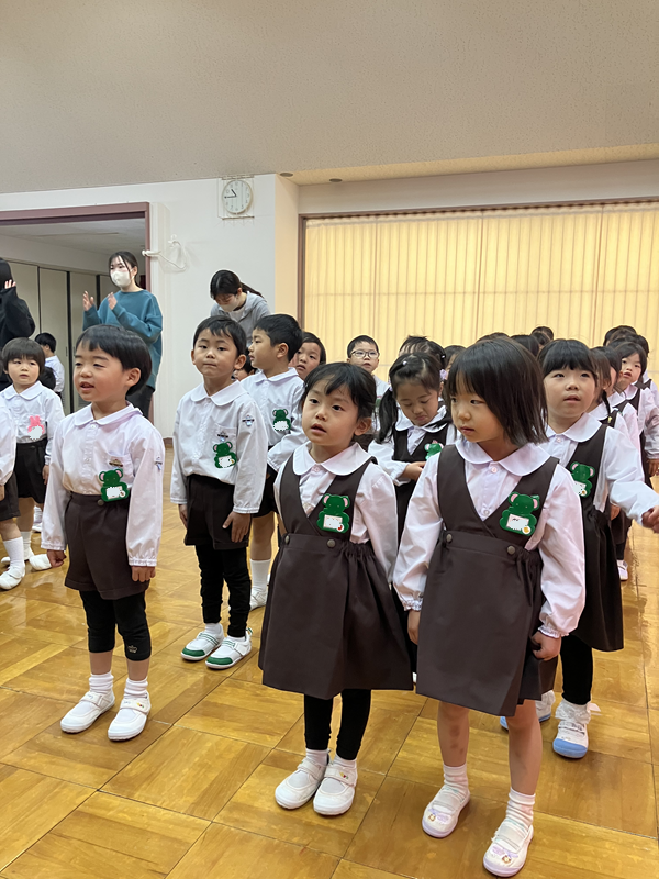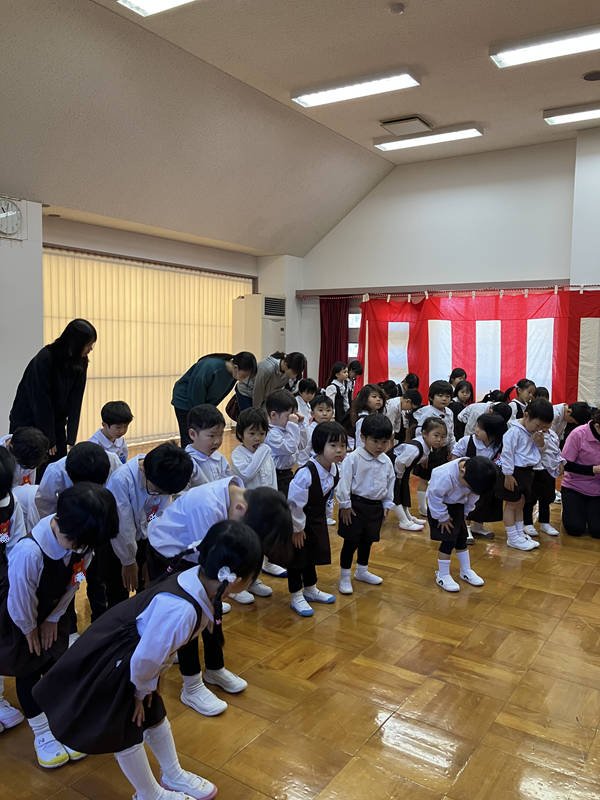 おじぎをしたり、園歌を歌ったり、