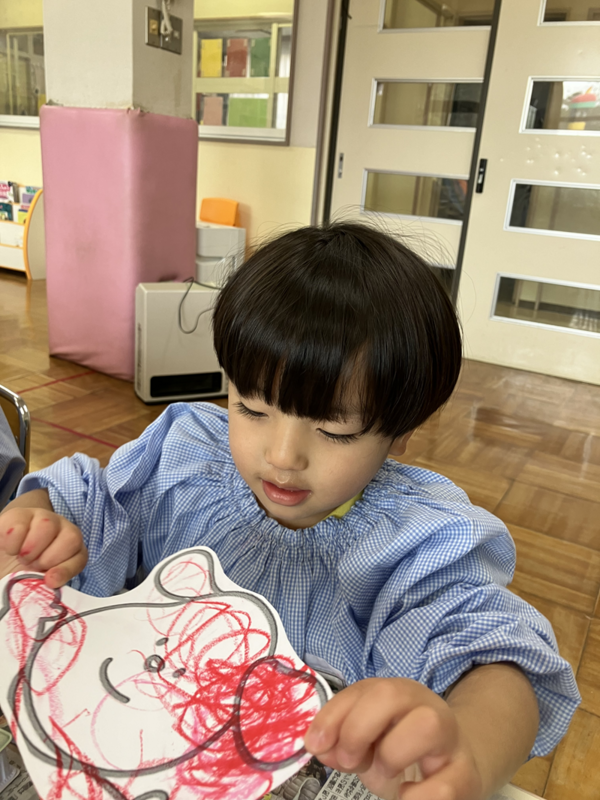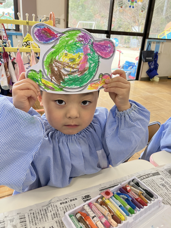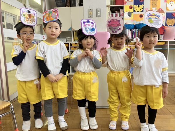 生活発表会の役が決まり、みんなで自分たちが演じる役のお面を作りました。