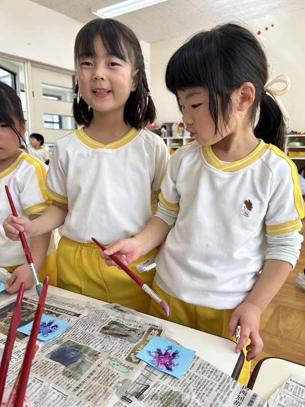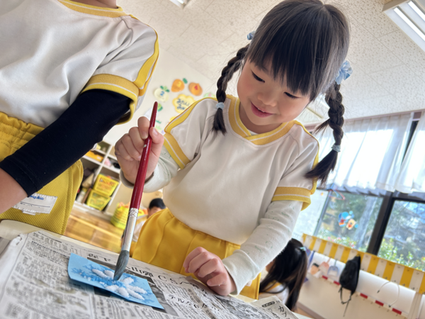 ちょんちょんちょん♪と絵の具をつけると