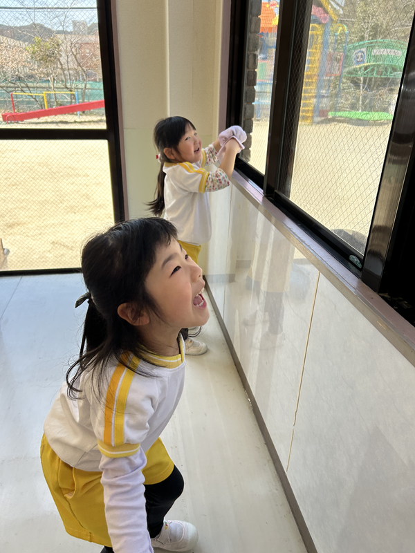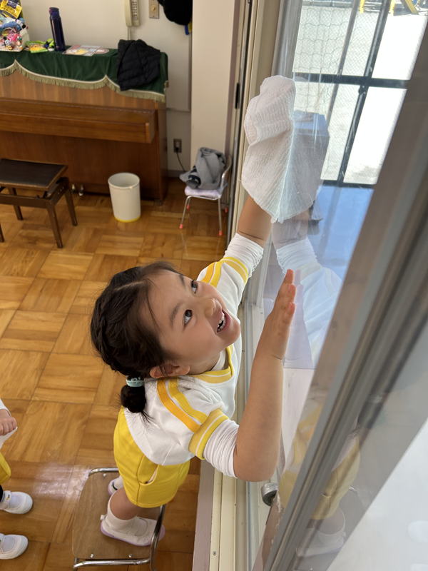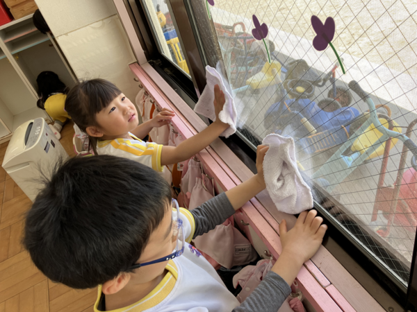 「ここも汚れているよ〜」「ほこりをとったよ!」と