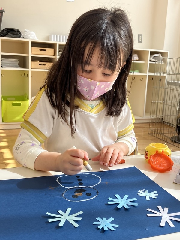 ペタペタして雪だるまさんを