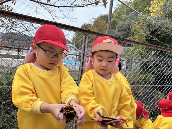 「赤色の葉っぱあったー」