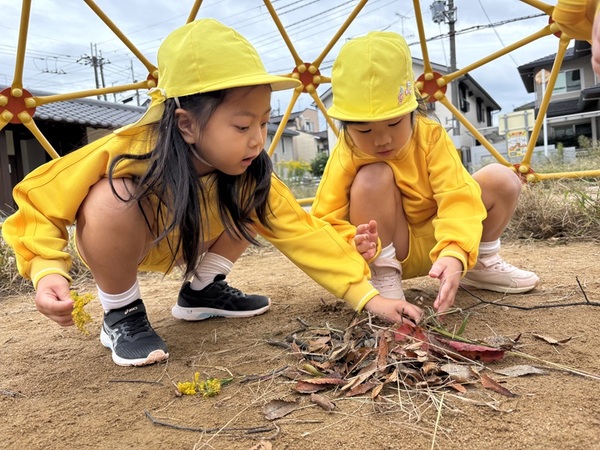 木や葉っぱを集めて遊ぶ姿も見られました♪
