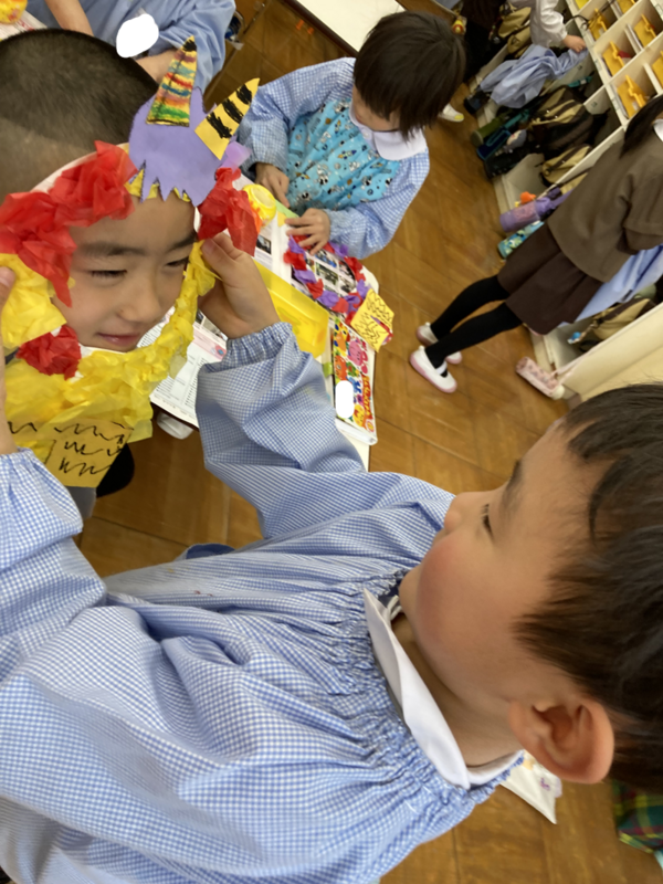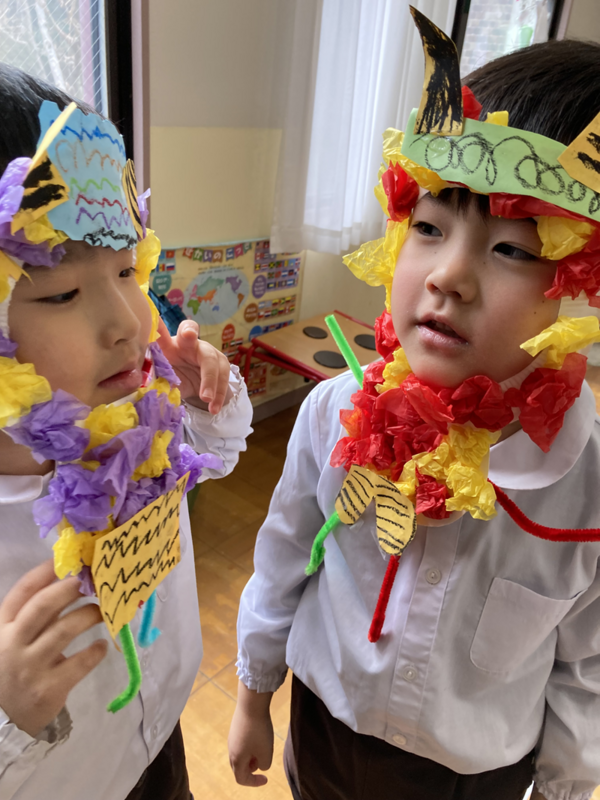 みんなで鬼のお面を作りました👹
