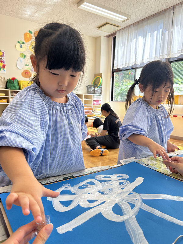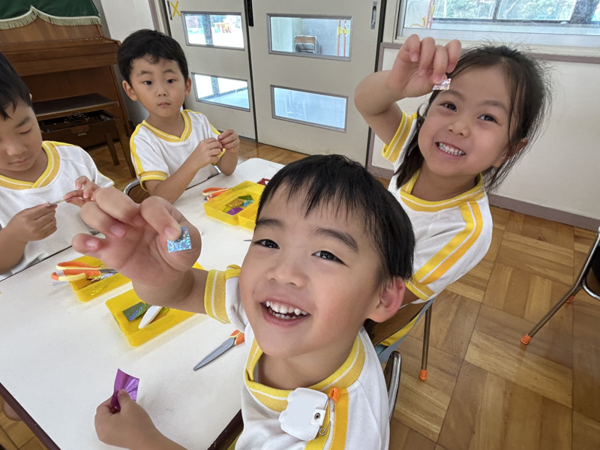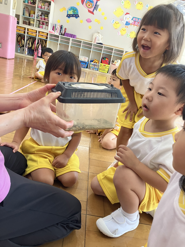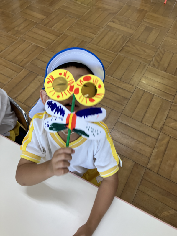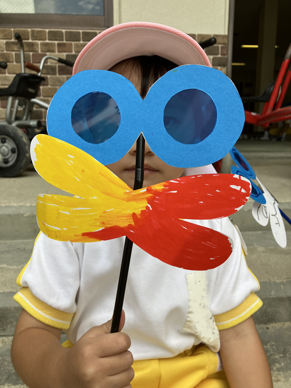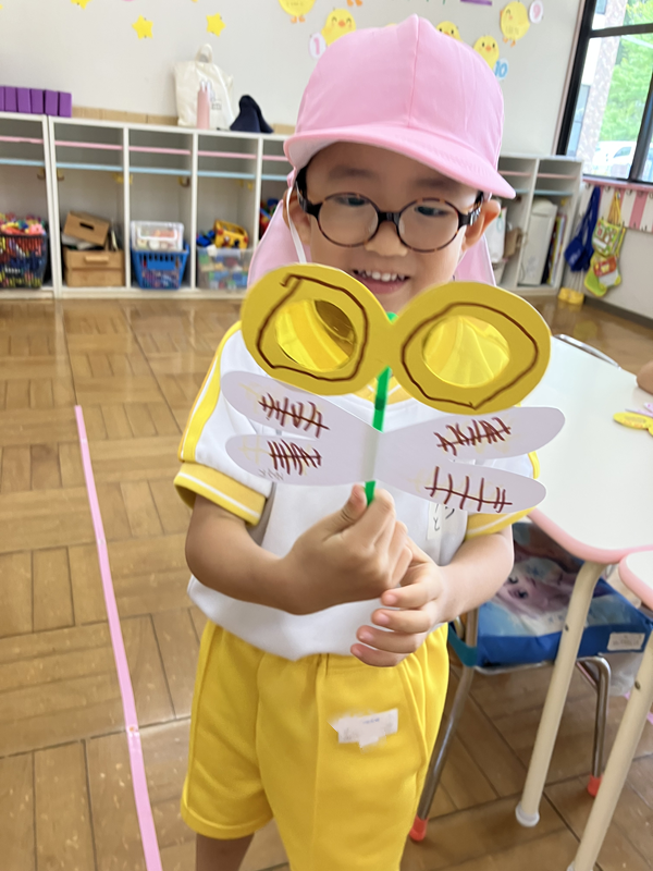 捕まえたとんぼさんを見て『みんなでとんぼさんを作ろう』と