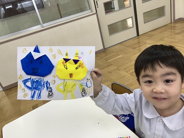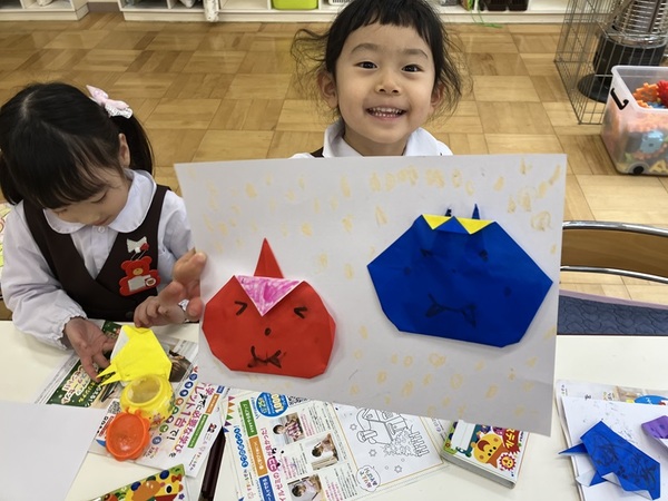今日はそんな鬼さんたちの折り紙を折りました♪