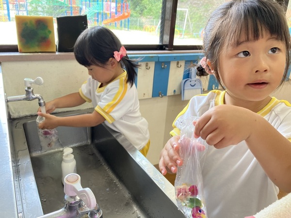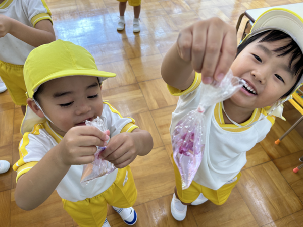 ホームページに写真であるように、毎日いろんな楽しい体験をしていて、「今日も楽しかったー!」と帰って来て、休みの日は「早く幼稚園に行きたいー!」と言っています。