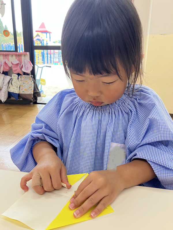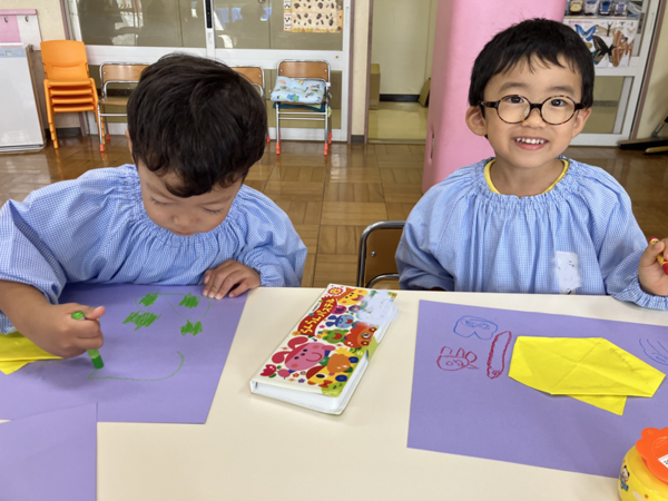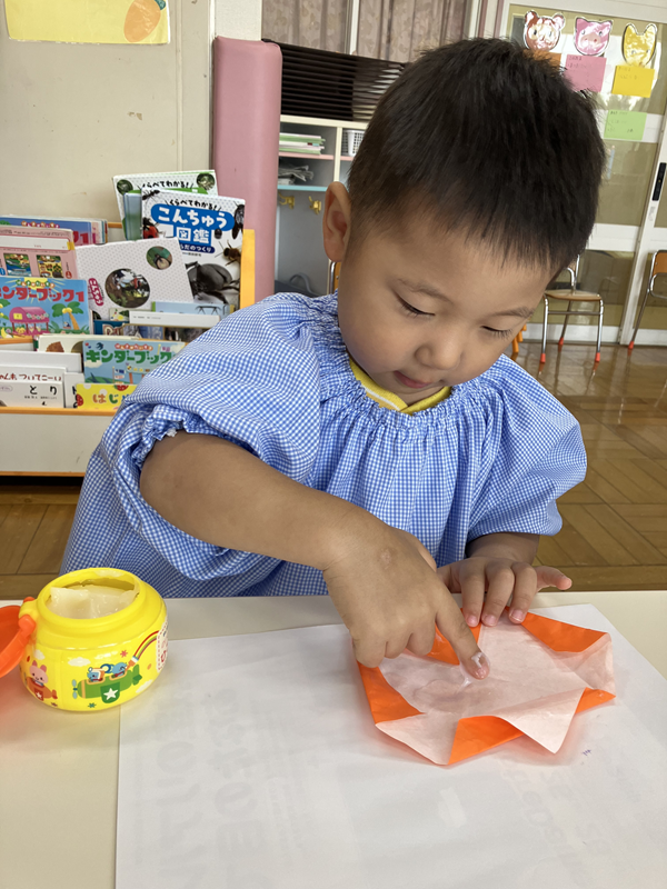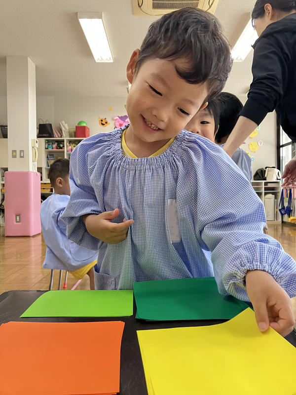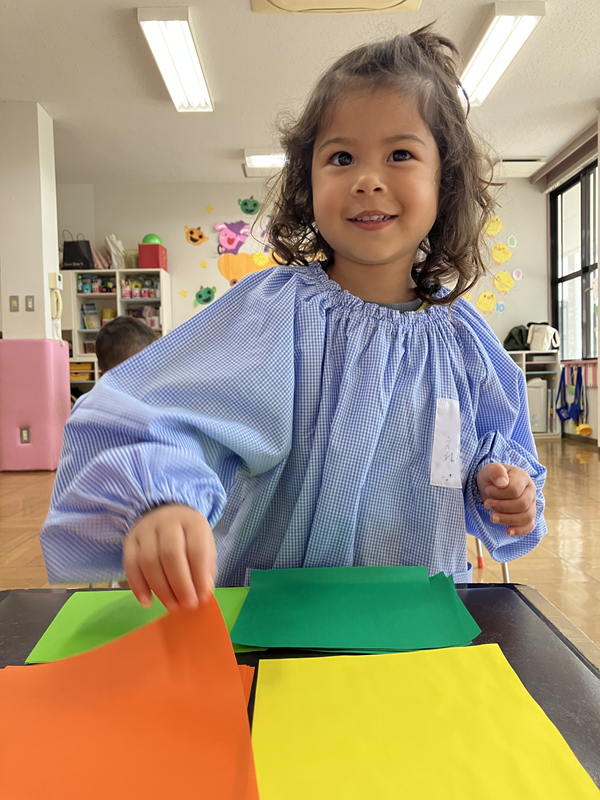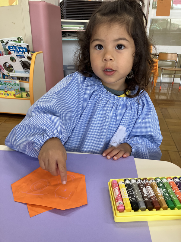 カレンダーに描いたかぼちゃマーク🎃を見て指折り数えているお友達です♪