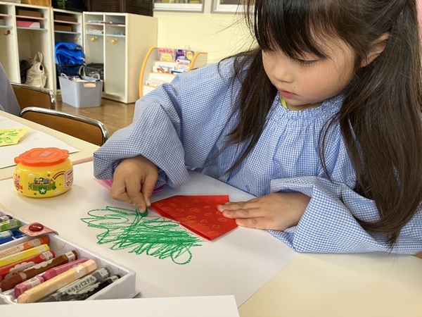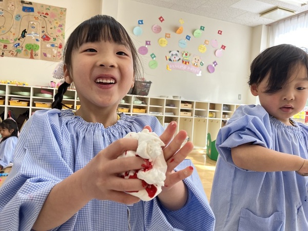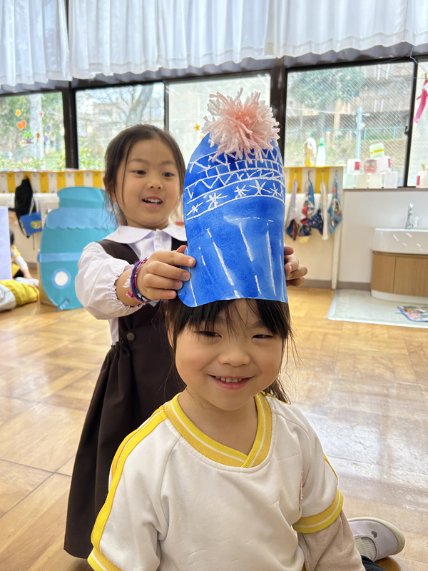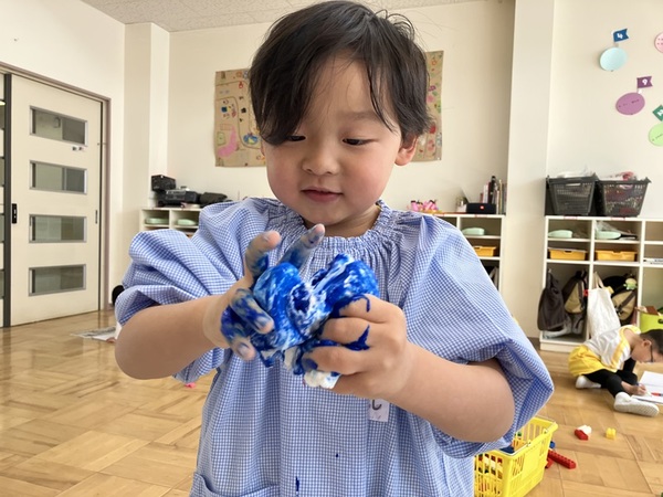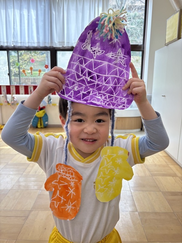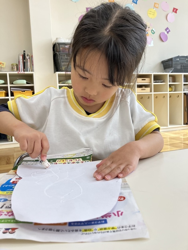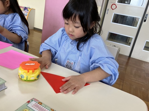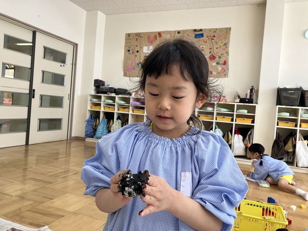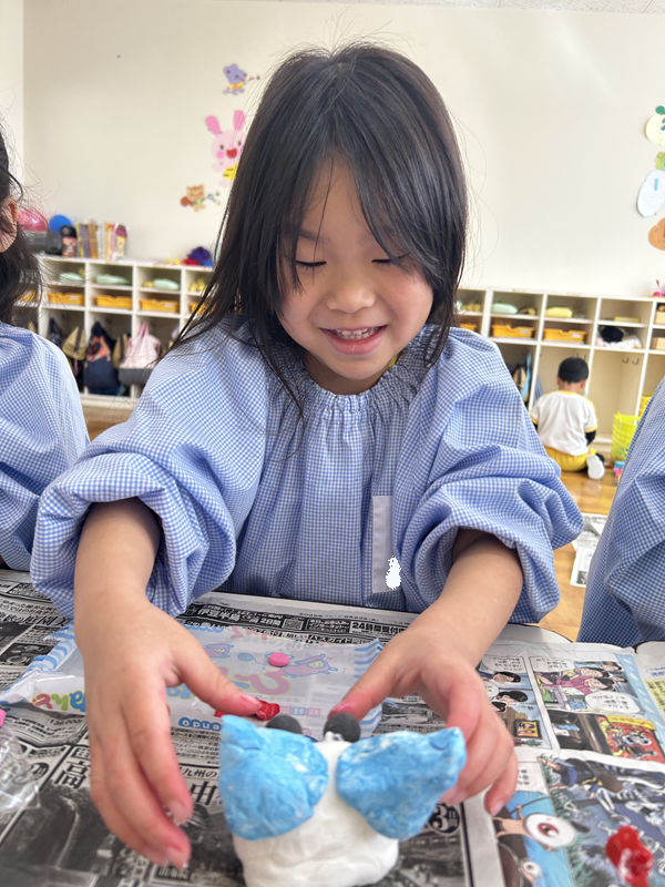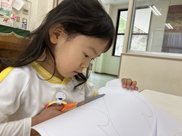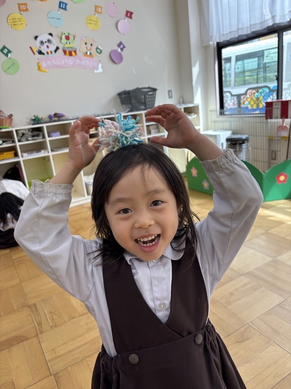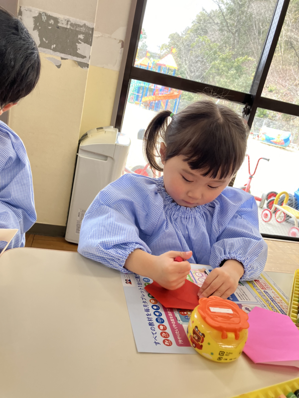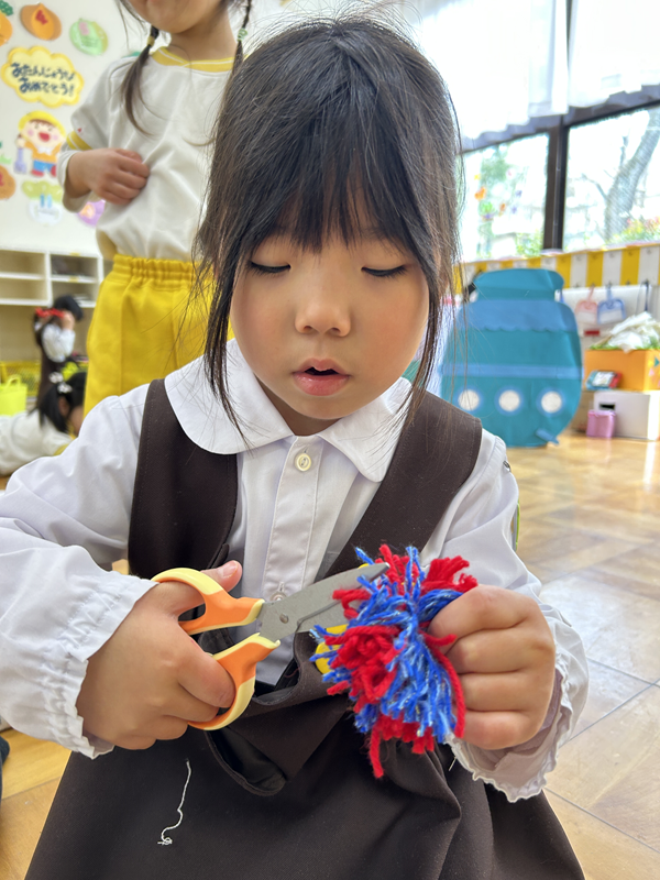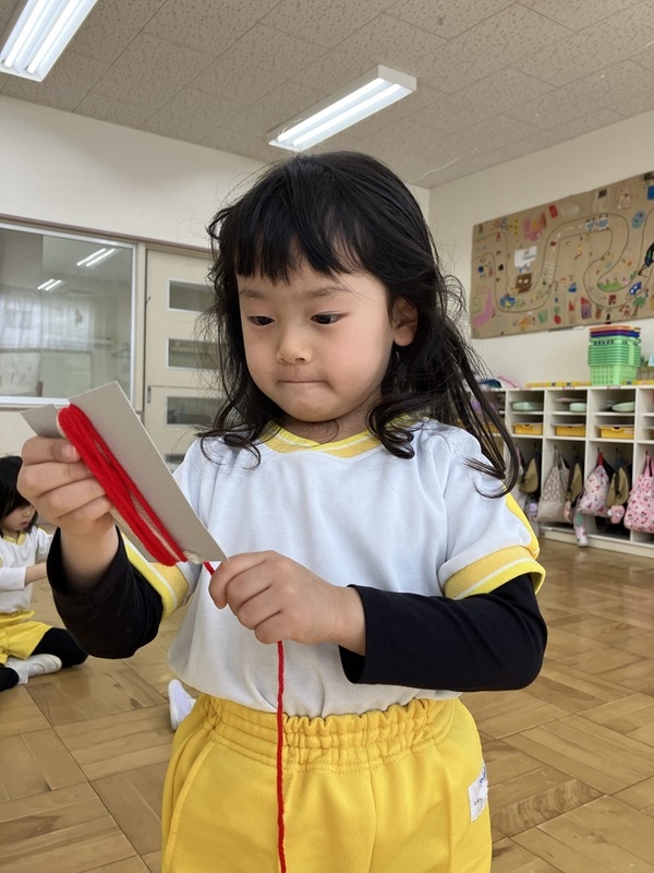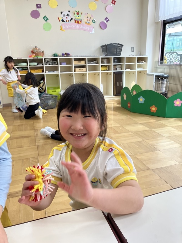 と苦戦しながらもグルグル真剣に毛糸を巻くお友だち😊