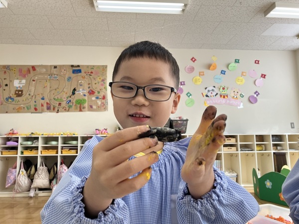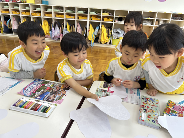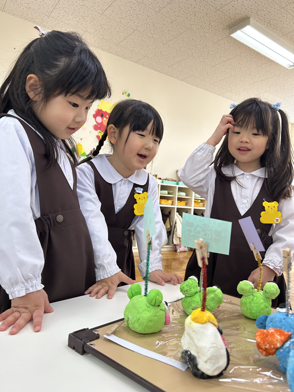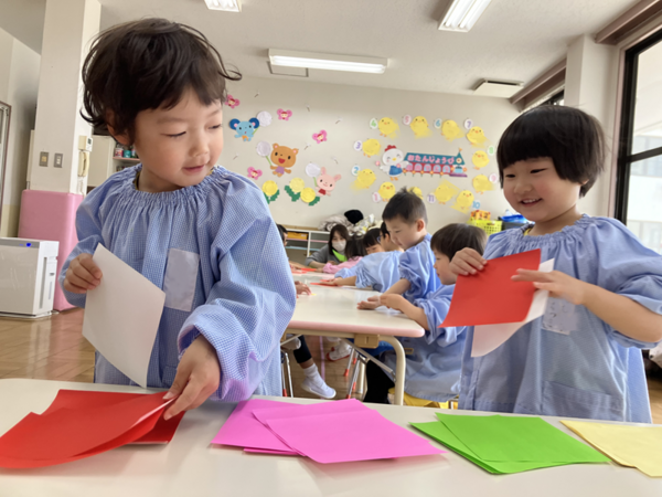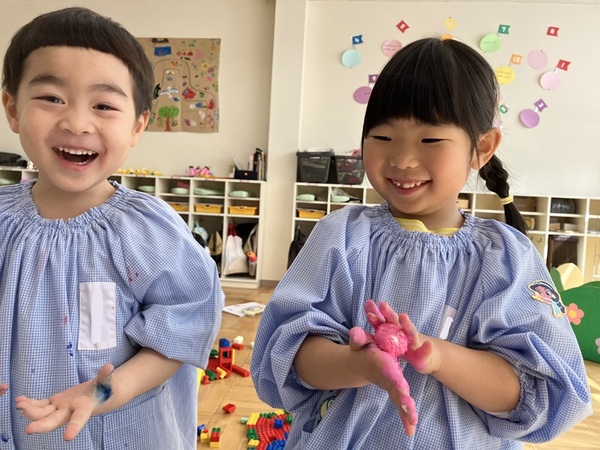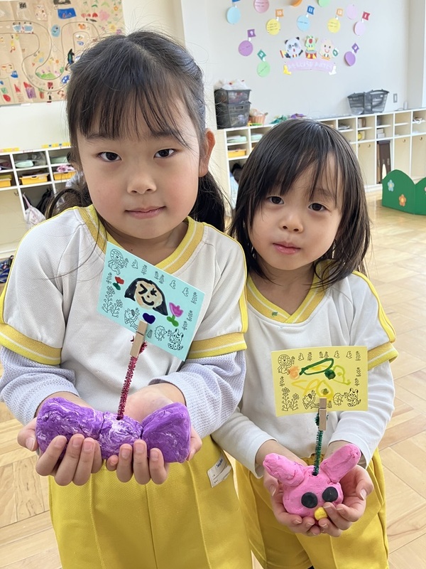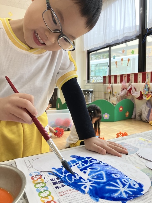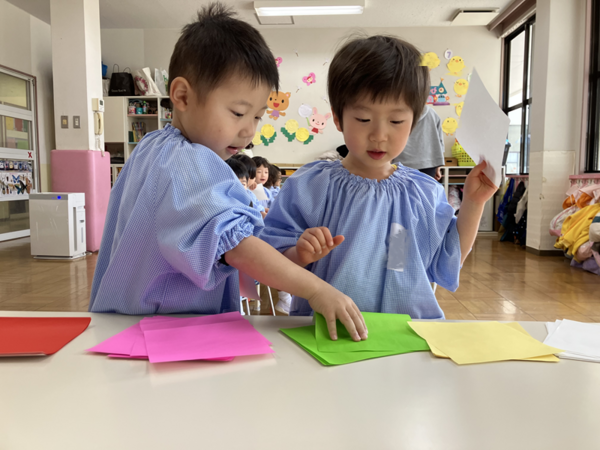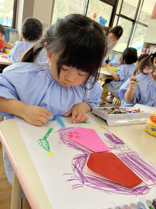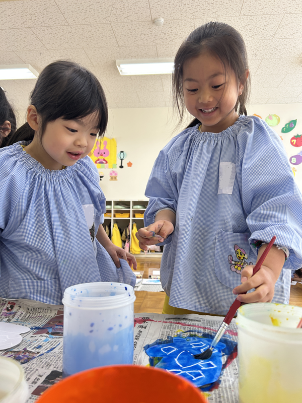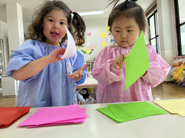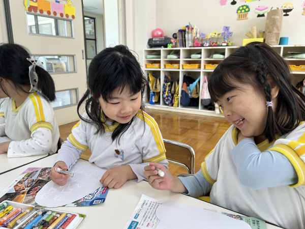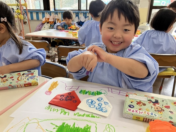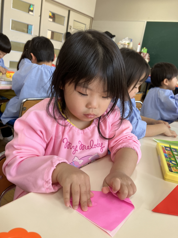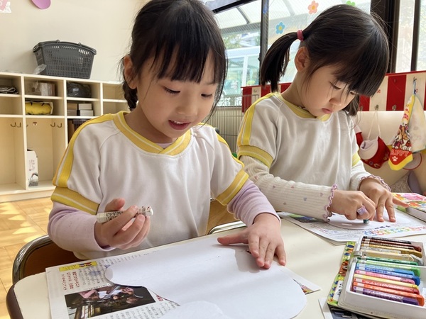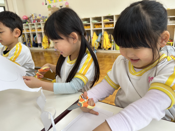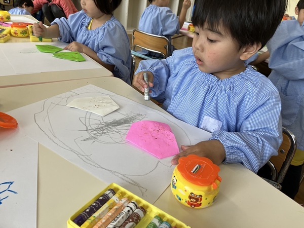 と苦戦しながらもグルグル真剣に毛糸を巻くお友だち😊