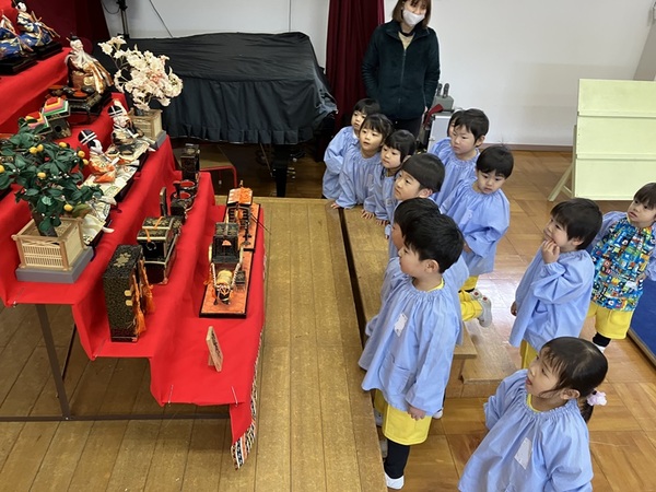 と本物の雛人形を見ながら